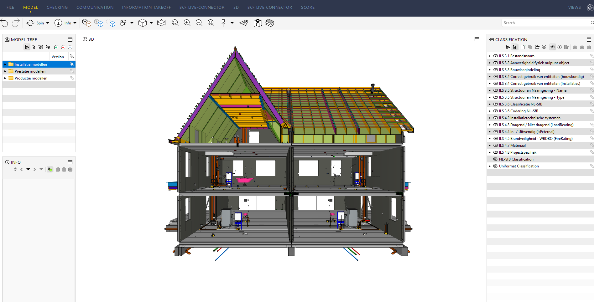 Heeft u een project wat in BIM/3D uitgewerkt wordt? Dat kan bijvoorbeeld omdat de opdrachtgever het eist of wanneer u als aannemer het project voor uw eigen doeleinden in BIM wilt uitwerken. Dan kan ik u en uw bedrijf daarin ondersteunen middels BIM-Coördinatie. Ik controleer de modellen op data denk aan de BIM Basis ILS of ILS O&E maar ook op kwaliteit door middel van clash controle(s). Dat geldt voor zowel prestatie als productie modellen. Doel is dat alle modellen waar nodig op elkaar zijn afgestemd (integraal) en dat de minimale benodigde informatie op de juiste plek is verwerkt.